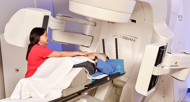 Radiación externa: proviene de una máquina fuera del cuerpo. Los pacientes van al hospital para el tratamiento, generalmente 5 días a la semana durante varias semanas.